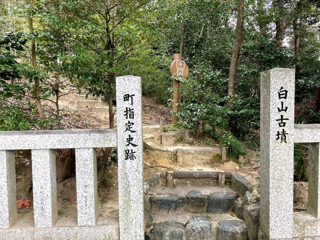 鳥居入ってすぐの所に古墳があります。遺物は岩崎城歴史記念館に展示されています。
