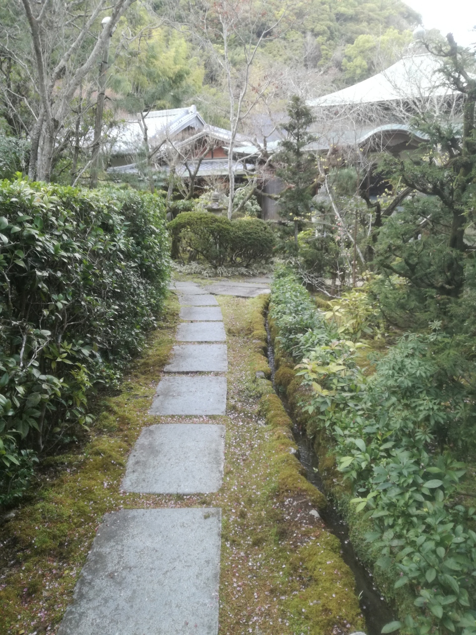 寺の山門を入り奥に進むと湧水の流れる美しい境内が広がります。期待しながら庫裏へ向かう途中に「いのしし被害で庭園の公開は休止」と表示がありショックでした。