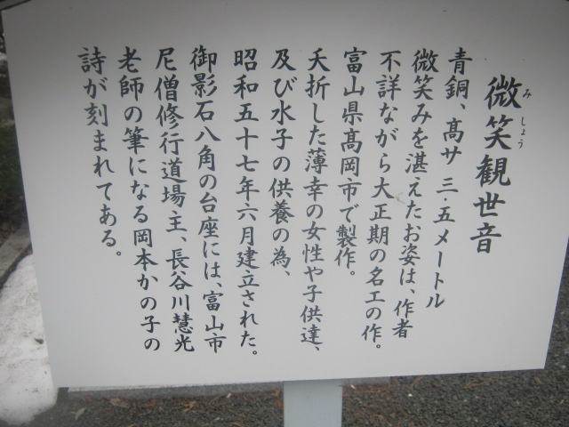 逆に本堂に関しては、割と近代的な風情の建物なので、観光という側面からは物足りなさを感じますが、山門の脇には、高台寺を開創した宏選種貞大和尚の立派な像が建っていたり、夭折した薄幸の女性や子供、水子の供養を目的に建立されたという微笑(みしょう)観世音様なども鎮座していらして、非常に見応えがあります。是非、ゆっくりと時間をかけて巡って頂きたい、これまでに私が北見で訪問したお寺の中では間違いなくナンバー1のお寺です。