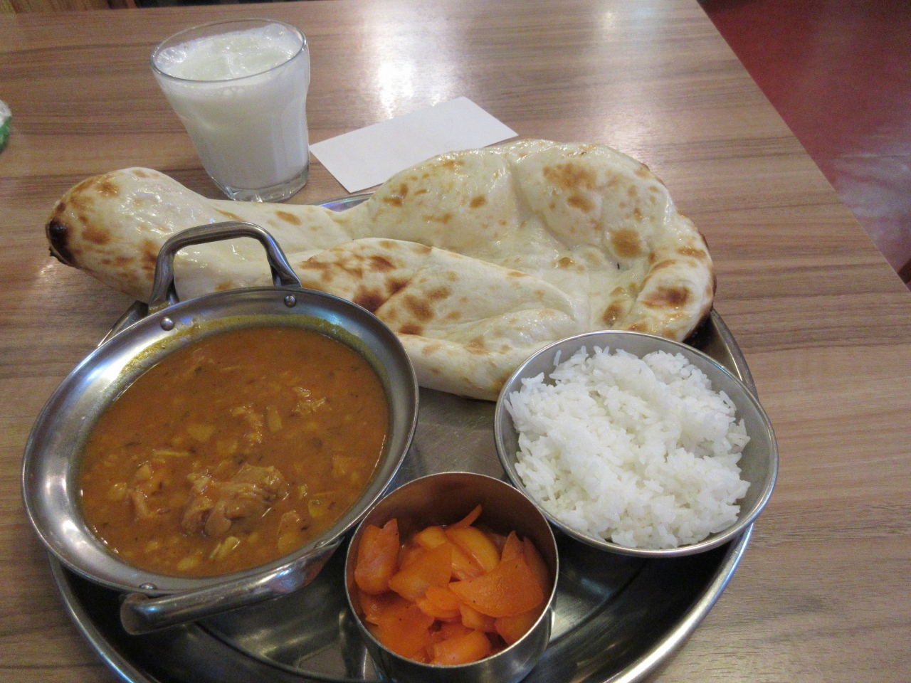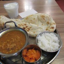 セットにはナンとライスが付いてきます、食べきれるかなと心配しましたが、ナンが小さめだったのとオレンジ色のが辛くごはんが進みました。