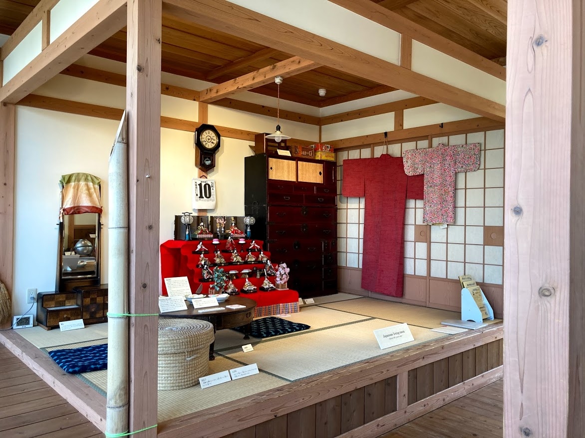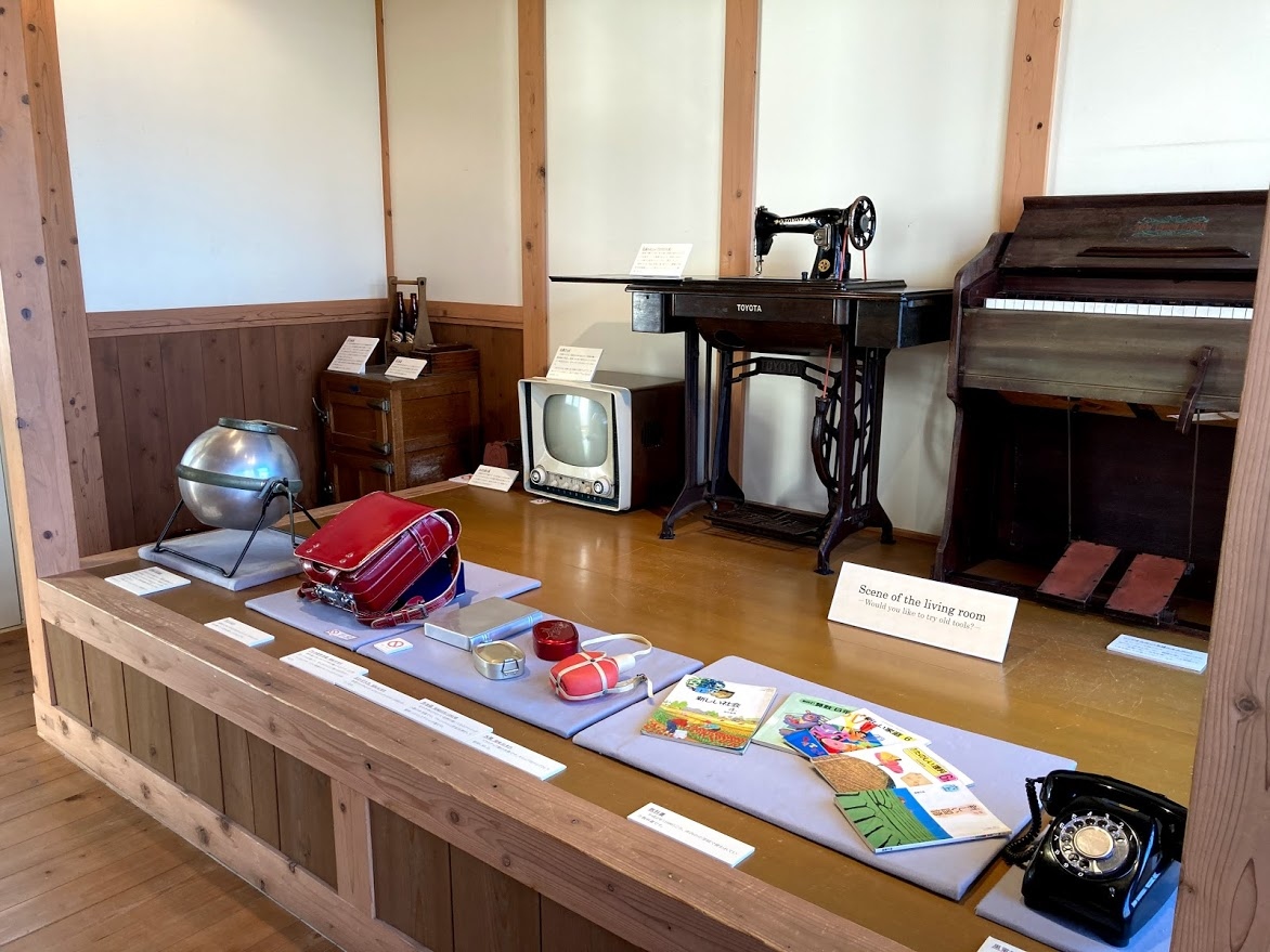 茶の間の風景のコーナーでは、お雛様が飾ってありました。当日の日にちになっていた日めくりカレンダーも馴染んでいました。足踏みミシンや黒電話の展示など、昭和がもう昔なんだなと今更ながらに感じました。