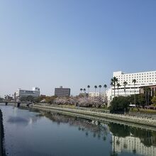 川沿いにはショップや飲食店等が並んでいます。夜はライトアップさせており、更に綺麗でした。