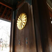 特徴的なのは、中央の2つの扉に付けられた直径1.5mの菊の御紋。
