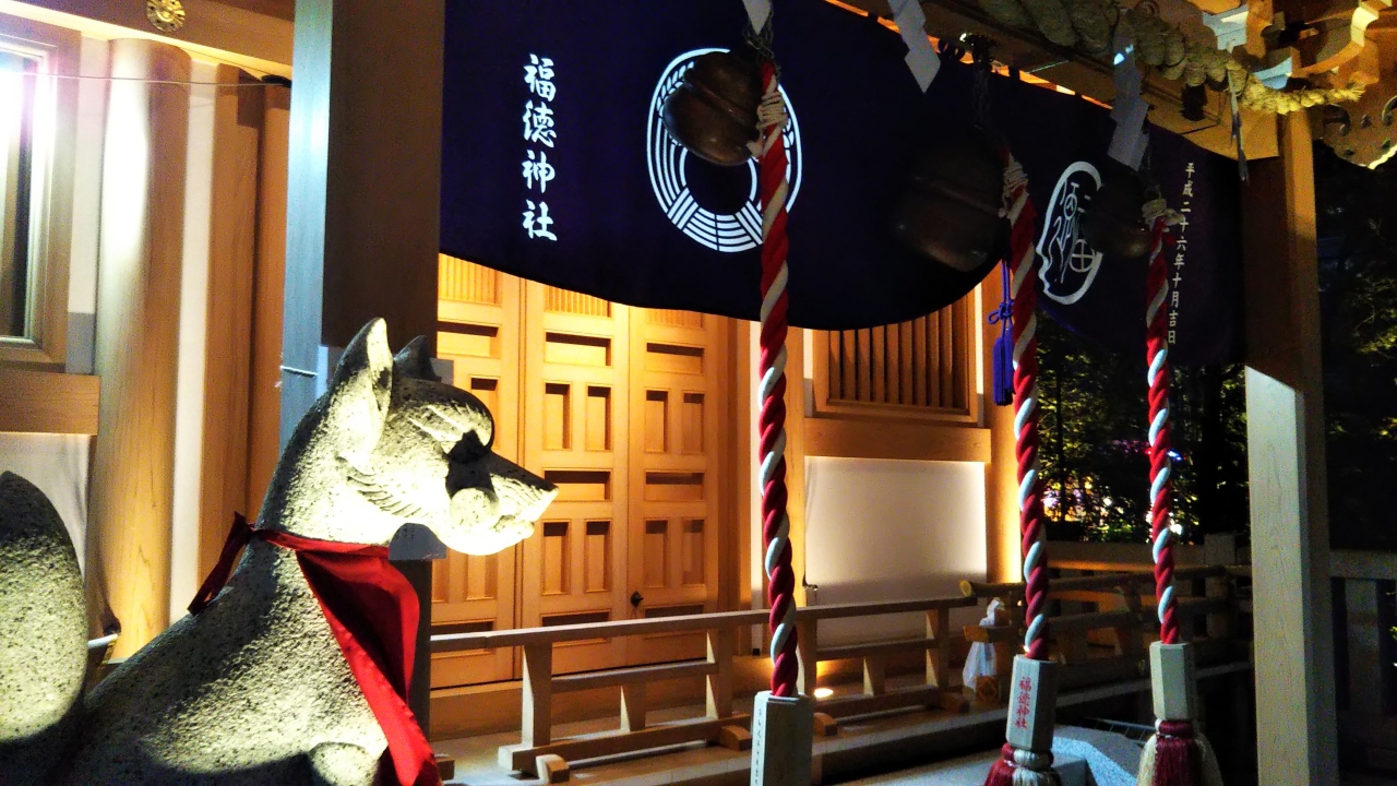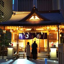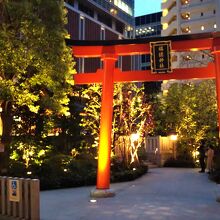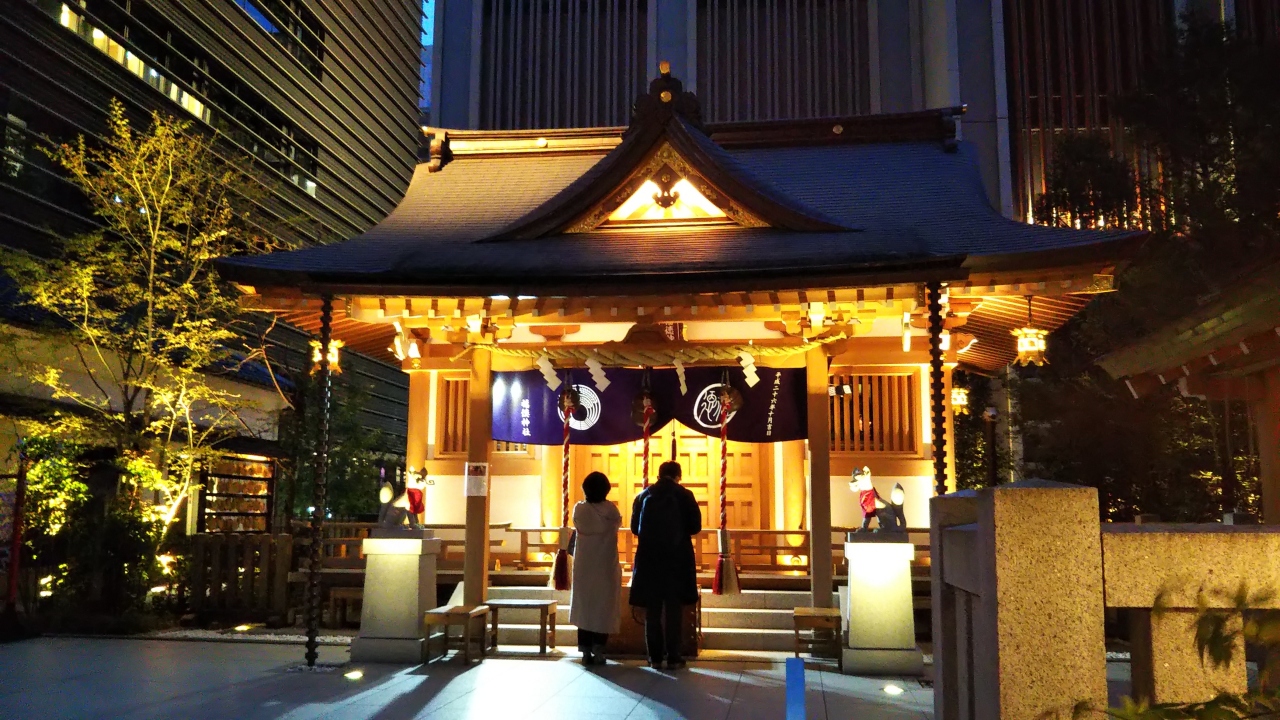 夜はライトアップされている神社で、宝くじなどの願掛けにいい神社とされている。周りは煩悩だらけのビル群、街並みだが、神社の境内やちょっとした散策スペース、休憩スペースもあり、都会の一角ではあるが、ちゃんとした神社の機能を備えている。
