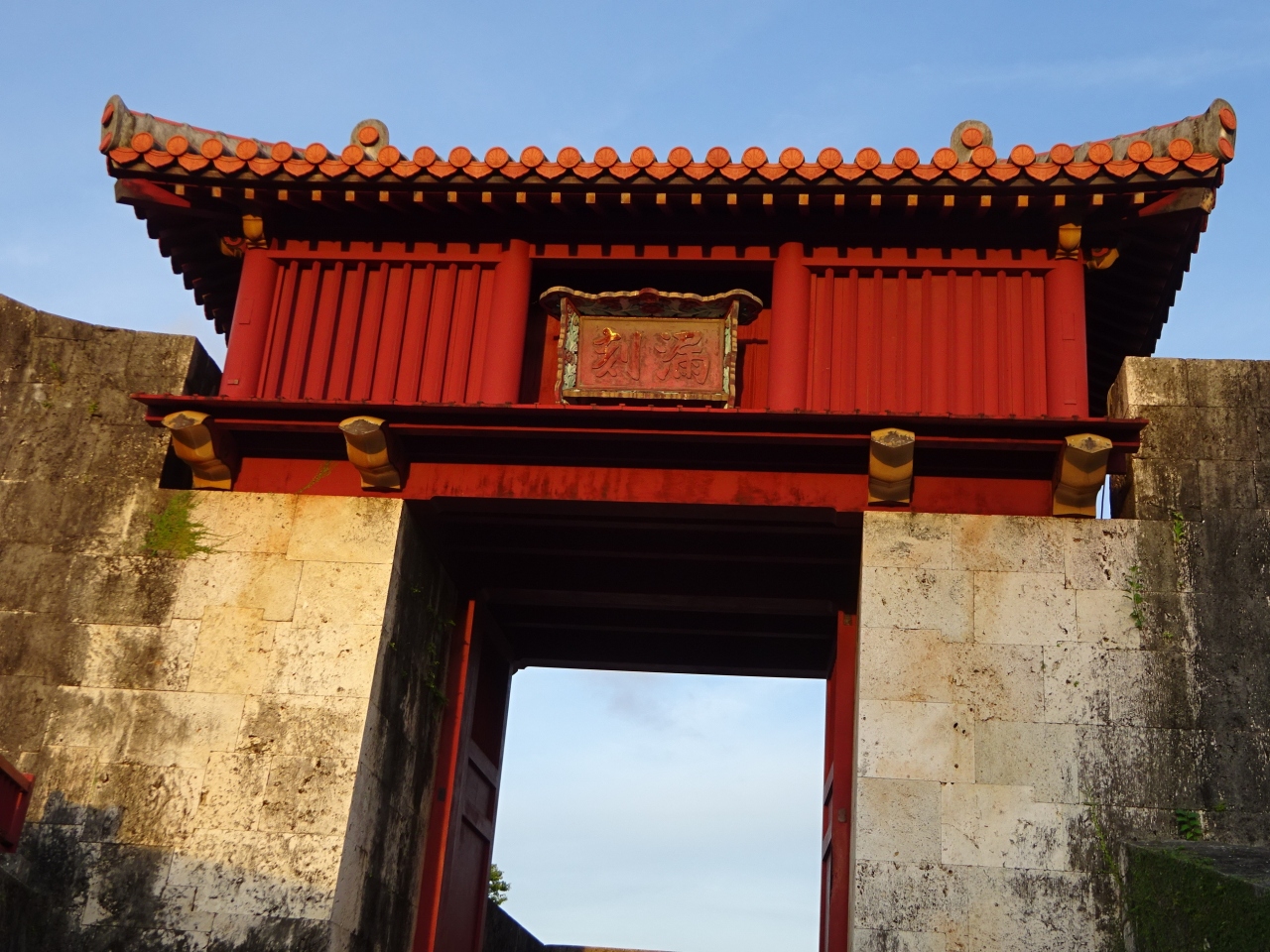 首里城の正殿のある有料ゾーンを目指して幾つもの門を登って最後の石段の上が漏刻門です。