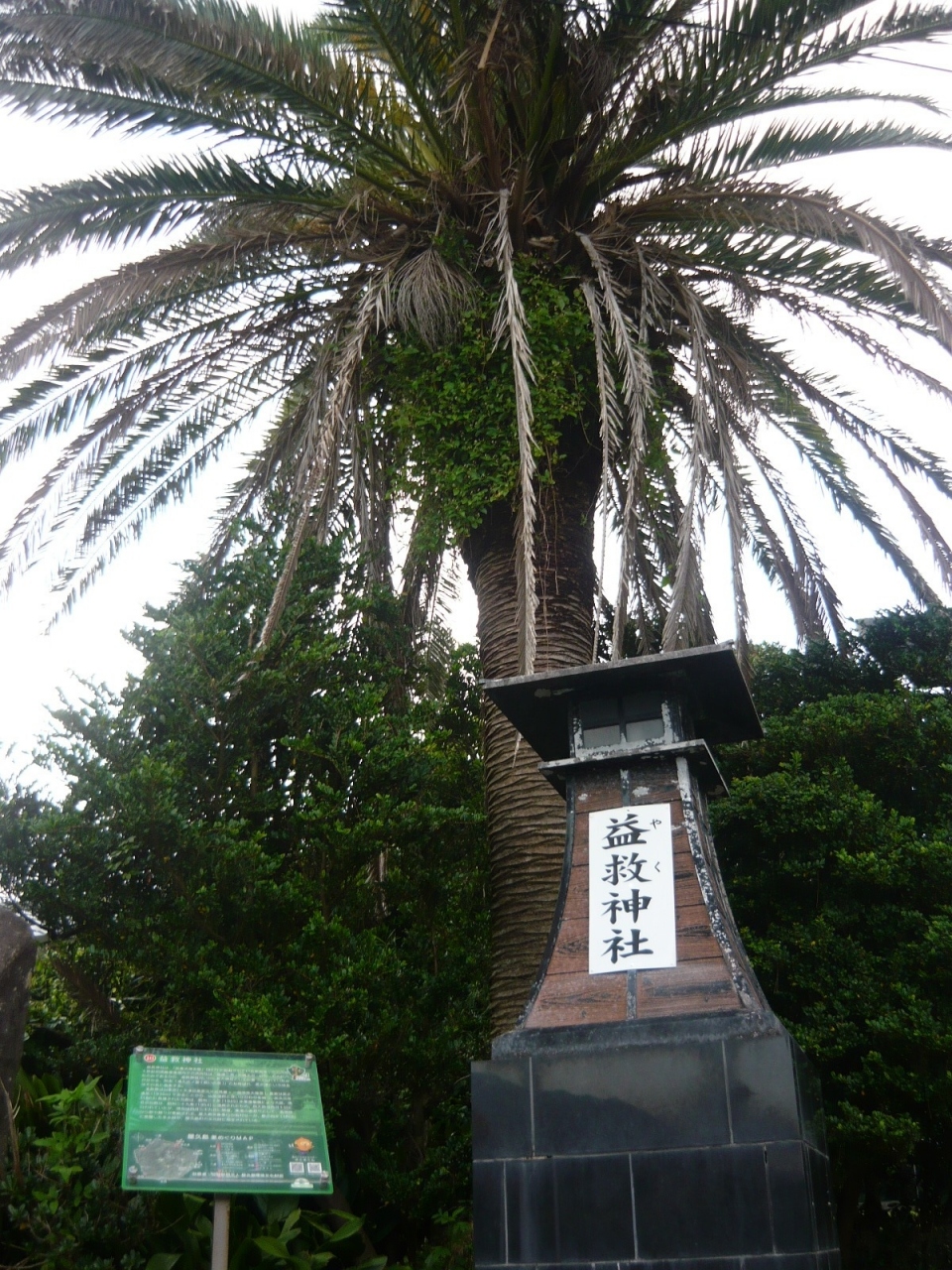 近くのホテルに泊まったので、散歩がてら参拝しました。神社の入り口に「ヤクジンジャ」とルビをうたれた灯篭の様なものがあって“ヤク”と読むことを知りました。境内にあった由緒書きによると古来から屋久島の名神として崇められていて、“益々救って”下さる神様だそうです。境内はそれほど広くはないですが、椰子やガジュマルなどの樹木に囲まれ南国の雰囲気がありました。