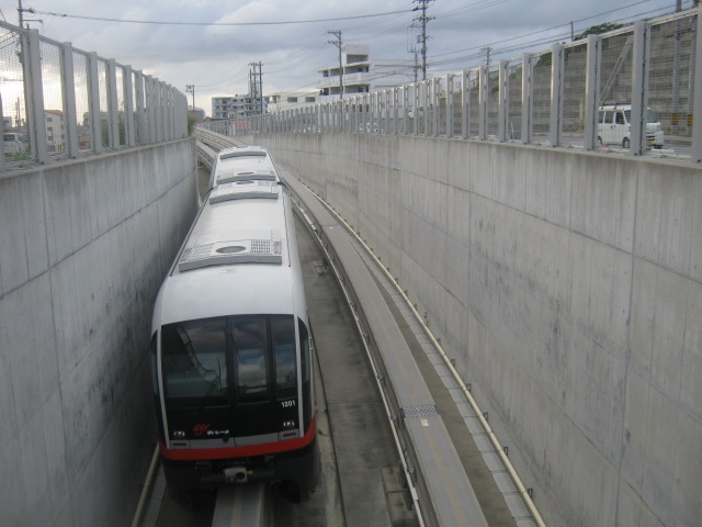 往路は那覇空港から、終点の一つ手前の浦添前田駅まで乗車し、浦添城跡などを観光した後最後はてだこ浦西駅まで歩き、その途中で、ゆいレール初の地下走行区間のトンネル出入口などを、道路脇から確認したりもしましたが、ゆいレールは本数も多くて、こういうアングルで撮影できるモノレールもなかなかレアだと思いますので、是非、撮り鉄の方にもお勧めしたいウォーキングルートだと思います。