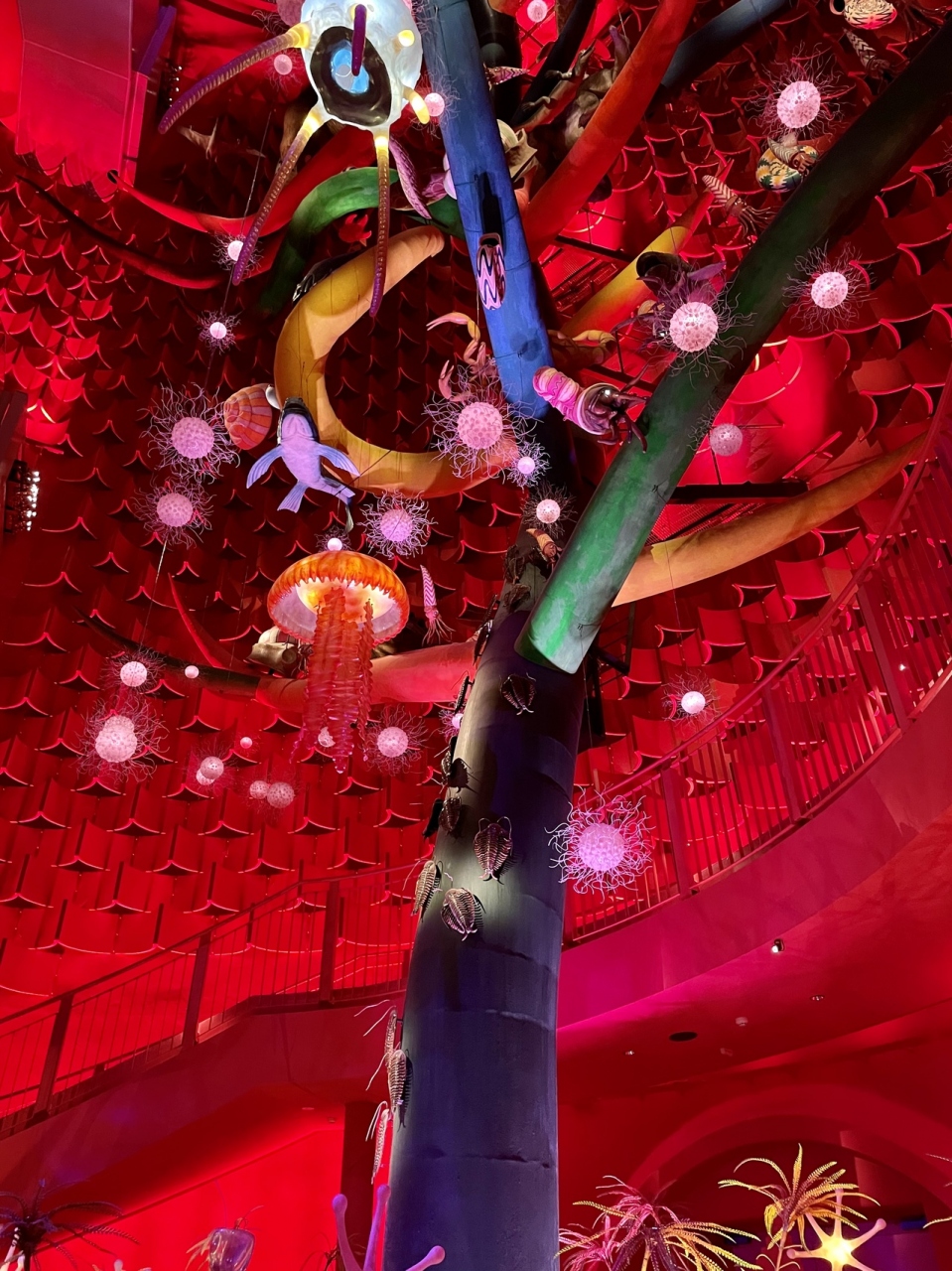 上に行くほど生物が進化していく展示物です。アメーバから魚類、恐竜、人類など292体あるそうです。