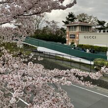 お花見スポットではありませんが、エリア周回道路沿いの桜が綺麗です。平日なのに思った以上に人出がありました。個人的にお気に入りのアパレル店もにぎわっていました。