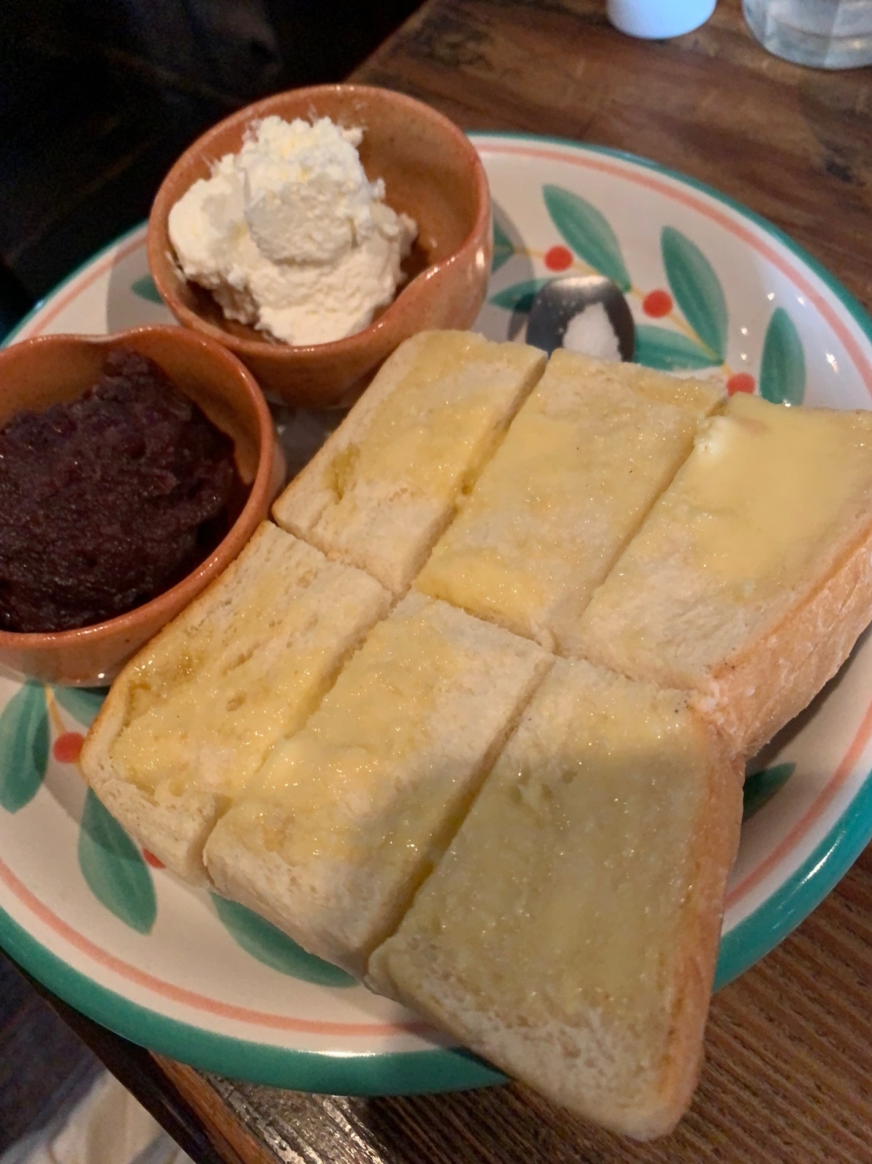 モーニングを注文。サンドイッチと迷いましたが、今回はあんこトーストにしました。珈琲か紅茶が付いてきます。トーストの上に乗っかってくるはずの餡子と生クリームはお願いして別添えにしてもらいました。また伺います。