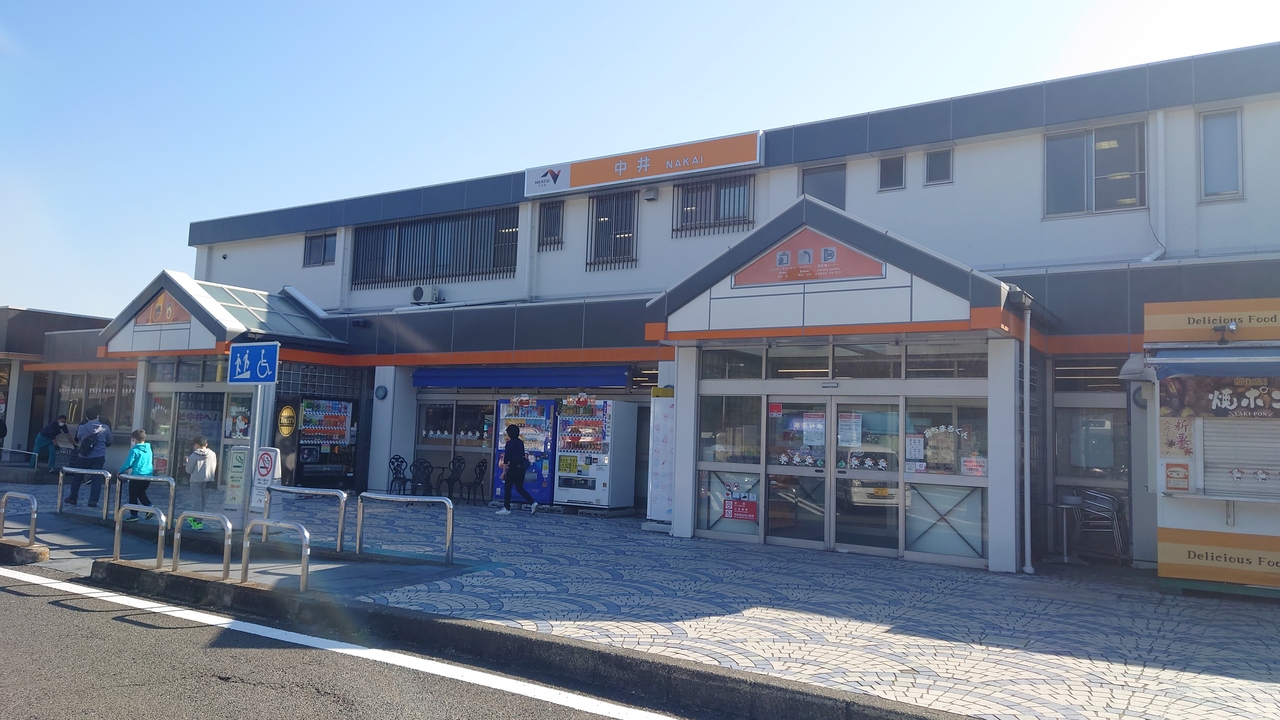 休憩を行うため、東名高速道路の中井パーキングエリア下りに寄りました。このとき行った日は祝日だったため、多くの車が来ていて、駐車場も混雑していました。店内はお土産コーナーとフードコートがあるだけのパーキングエリアでした。