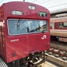 姫路から寺前までが電化されており、主に103型2両編成が運用されています。乗客は多いので、2両編成で足りるのか?と言う時もありますが、もう20年以上、103型の改造車が運用されています。