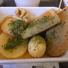 「天神屋 ドライバーズスポットNEOPASA駿河湾沼津下り」で朝食をいただきました。「静岡おでん5本セット」がご飯(小)+みそ汁付きで649円(税抜)だったので、それをいただくことにしました。おでんはセルフで盛る形式でした。定番の大根、たまごに加えて、黒はんぺん、はんぺん、餅きんちゃくをチョイスしました。ご飯と味噌汁も自分でよそって完成です。出汁粉をたっぷりかけていただきました。どれもはずれがなくとても美味しかったです。日本酒を飲みたくなってしまうところでしたが、ドライブ中なのでぐっとこらえて、最後はごはんを出汁茶漬けにして〆ました。