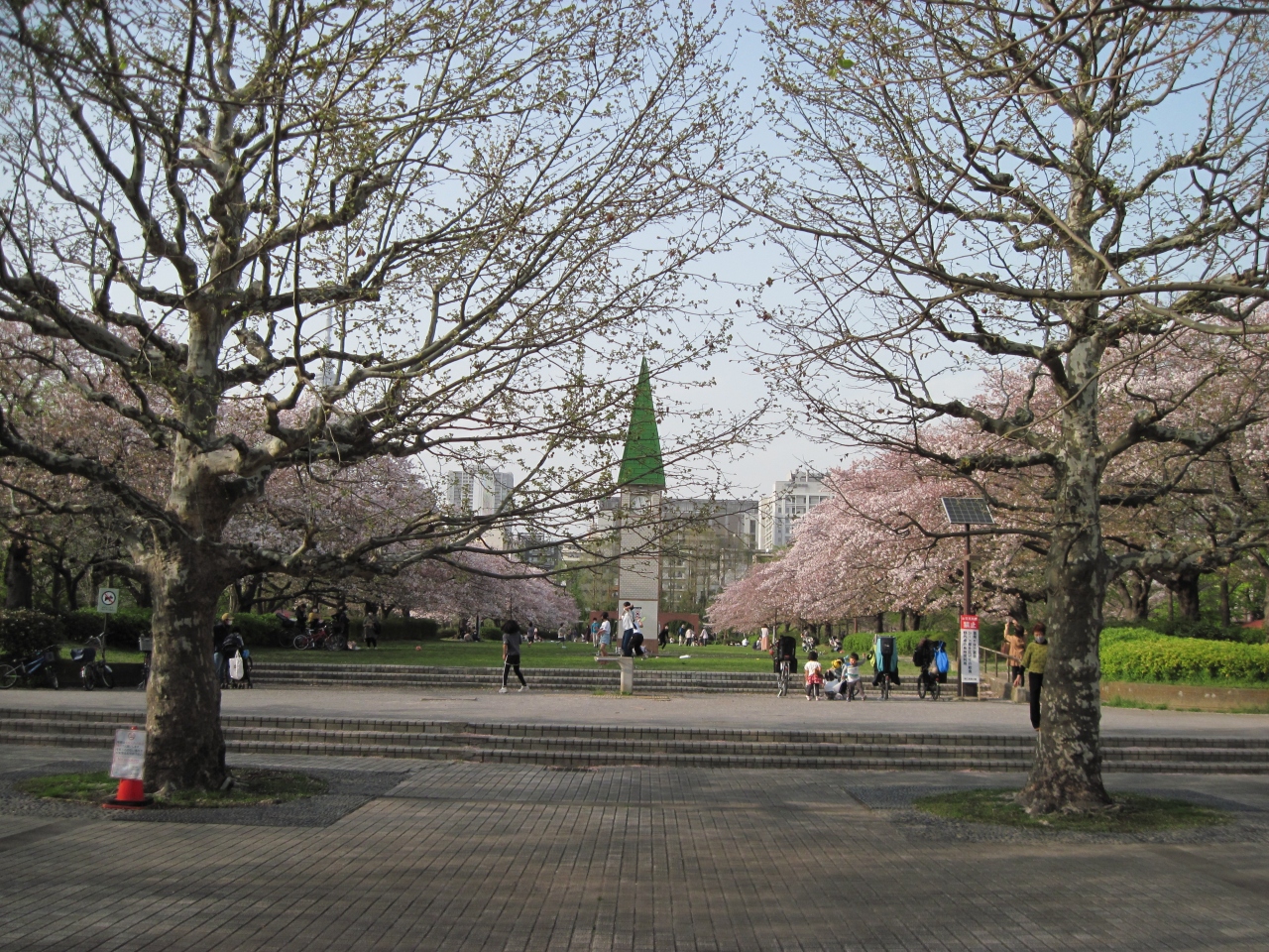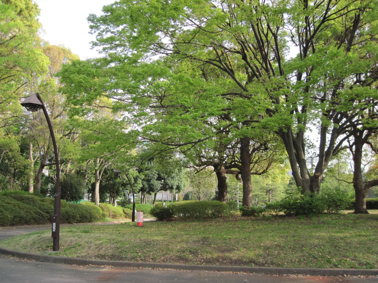 住吉駅から徒歩5分ぐらい、公園の中は思っていた以上に広かったです。ソメイヨシノも散り始めていましたがきれいでした。園内の公園事務所近くにある池には、大きなサギや鴨などの鳥たちが羽を休めていて、自然豊かな公園でした。