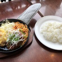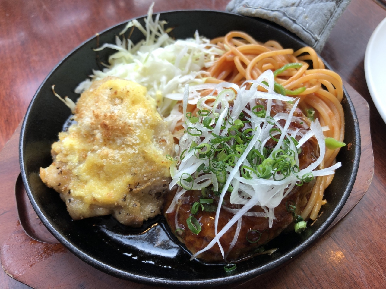 ランチはいずれもかなりボリュームがあり、週替わりの「コンビネーションランチ」は私が食べた時はハンバーグやチキン、ナポリタンなど食べたいものばかり。13時を過ぎると売り切れの時もある「ローズプレート」は、お店定番のステーキ、チキンカツカレー、ナポリタンが一つのプレートにまとまったボリュームのあるランチ。ステーキは柔らかく、チキンカツは揚げたてサクサクで美味。大盛り無料なのも嬉しい。種類は、アイスコーヒー、アイスティ、アイスウーロン茶のみですが、100円で飲み放題となります。