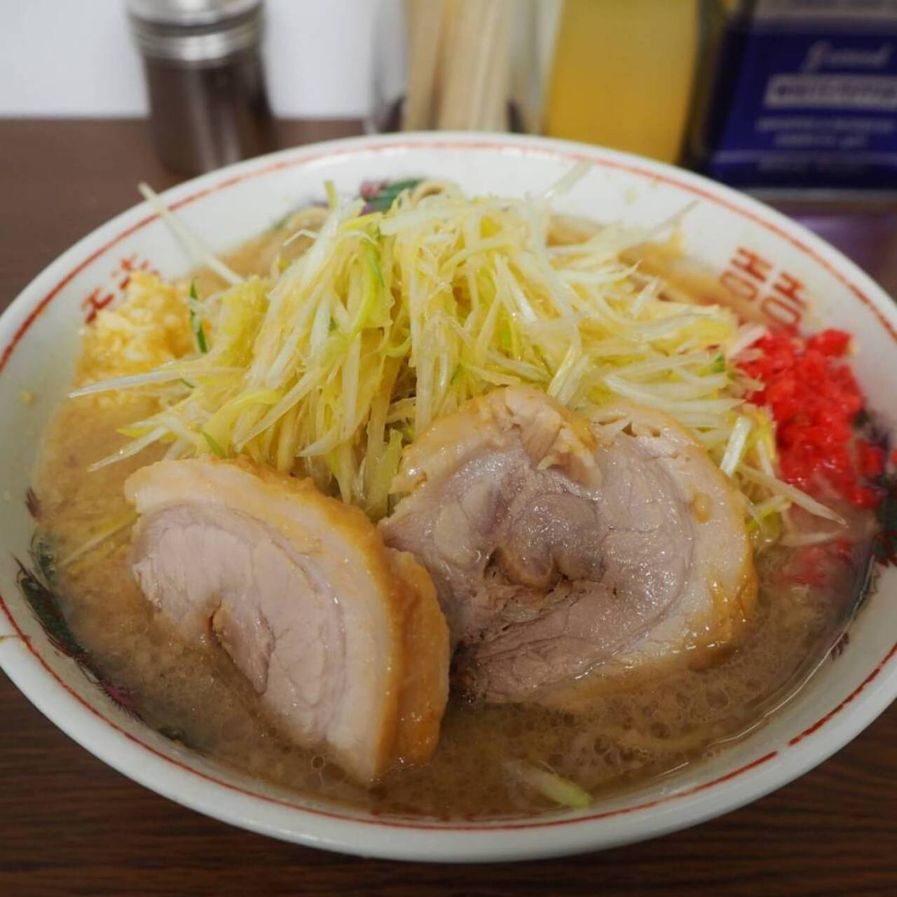 やや甘めのスープでかなりしっかり濃厚です。この日はネギの食券があったのて野菜抜きにしてネギをトッピングしました。ネギどっさりで香りがいつもと違う感じで楽しめました。