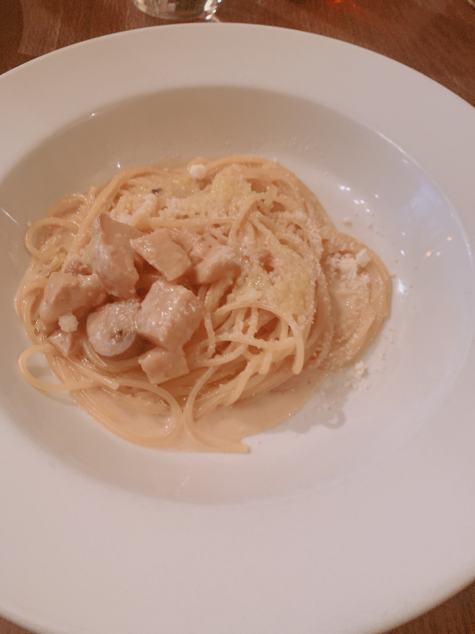 行きたかったイタリア料理店が混雑で入れなかったのであきらめて歩いていて見つけたのがここです。飛び込みながらコースをいただきました。パスタもピザも出てくる豪華なセットでどれも普通においしかったです。12時には満席になっていました