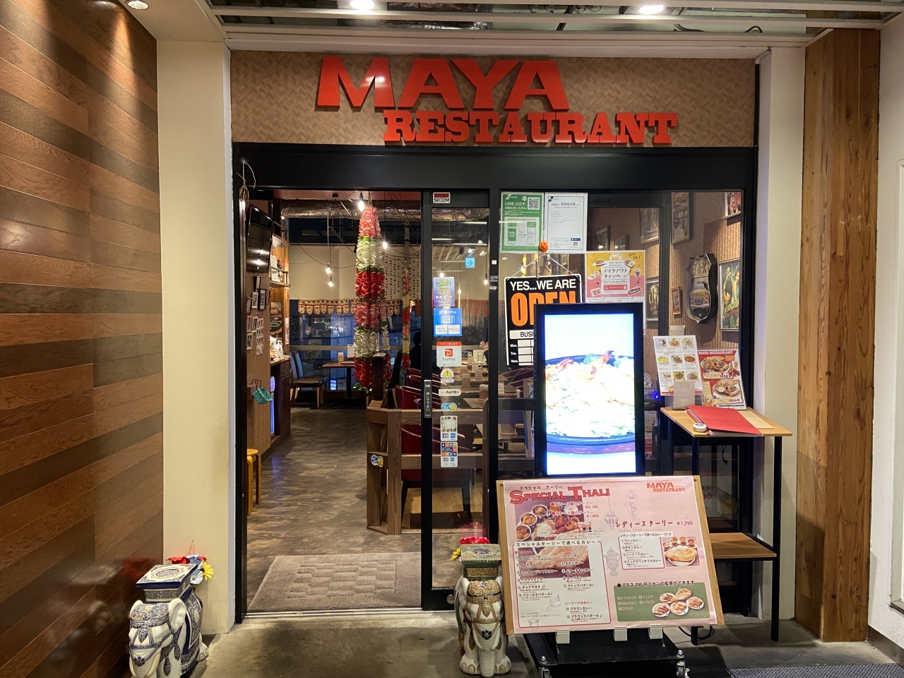 夕飯時だったのでマヤセットA(1450円)をいただきましたが、2種類のカレーにサラダ、タンドリーチキン等のインド料理にラッシーまでついてコスパよしです。