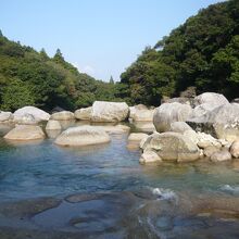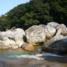 永田浜から少し山側に入った場所にあります。駐車場から獣が出そうな山道を5分ほど歩くと少し開けた渓谷に出ました。大きな花崗岩が折り重なった渓谷は水はとても綺麗で自然に形成された大きなプールのようになっているところもあります。水はとても冷たかったですが、真夏なら泳ぐこともできそうでした。駐車場の傍にトイレもありました。