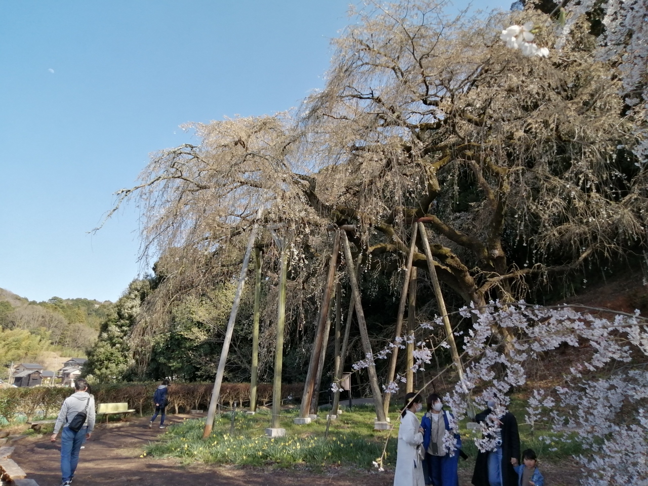 残念ながら2021年の「奥山田のしだれ桜まつり」はコロナの影響で中止。よって夜間のライトアップや茶店、地元物産品の即売会もありませんでした。