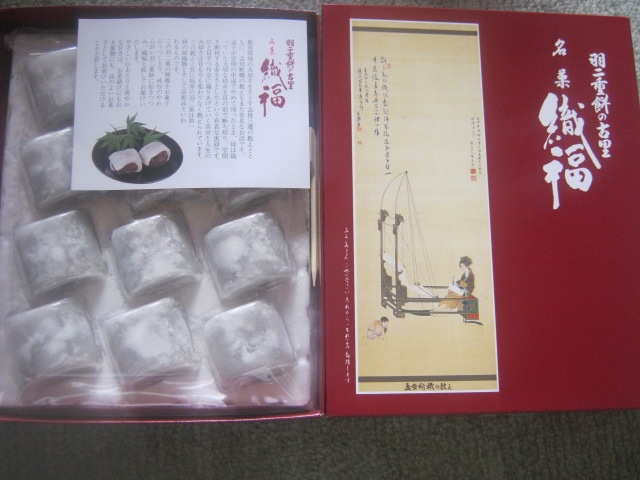 永平寺の羽二重餅の製造元として有名なお店ですが、今回は通常の羽二重餅でなく、真ん中に餡を包んだ織福、という銘菓を購入してみました。