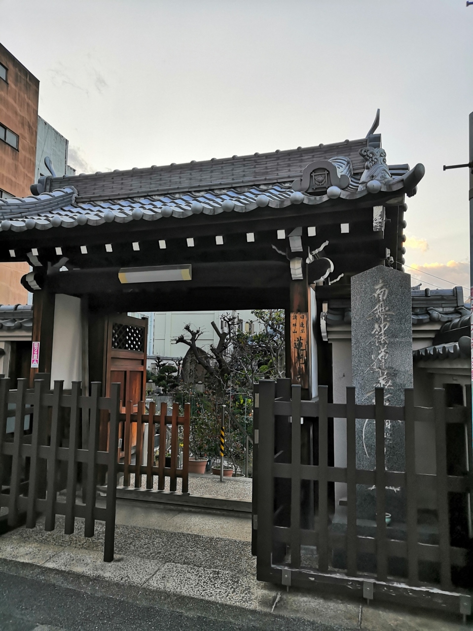 谷町九丁目周辺のお寺が多いエリアのなかでも駅に近い場所にあります。日蓮宗のお寺です。入り口近くに日蓮宗のお寺らしく、南無妙法蓮華経の石碑があって目立っています。それ以外は小綺麗ですが、あまり特徴的な感じはないです。