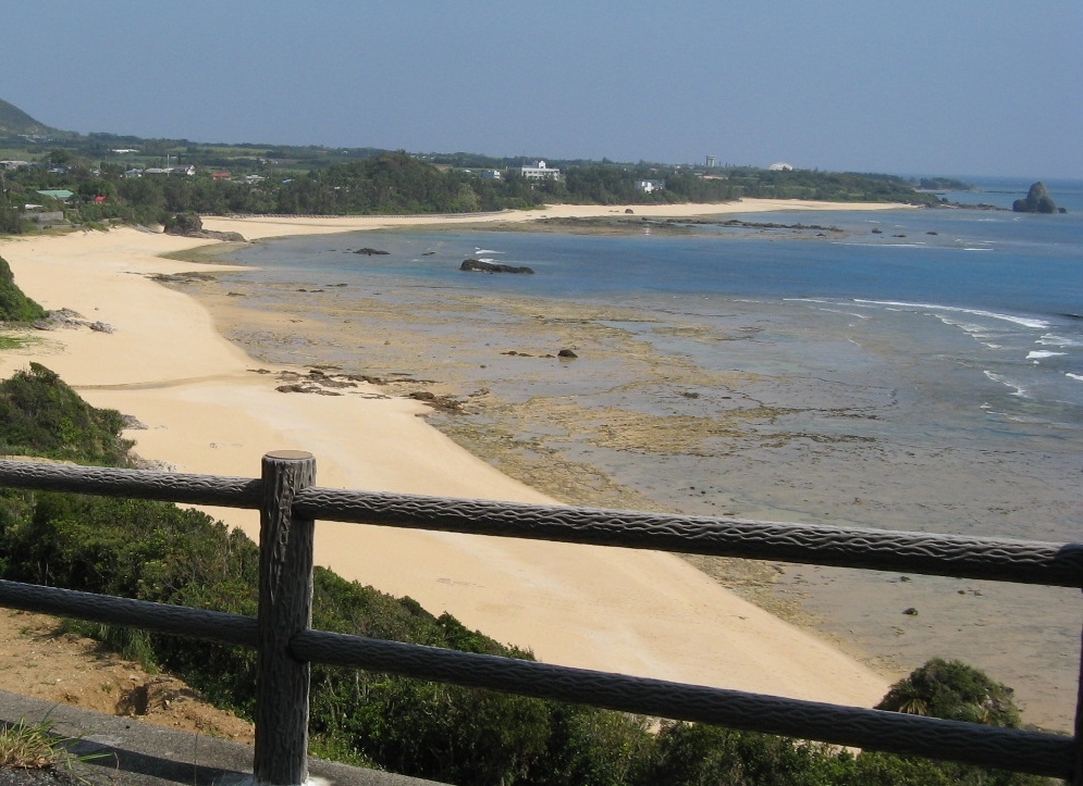 奄美空港から名瀬方面へ県道82号線を車で10分足らず、県道脇右手に「土浜展望所」が見えて、すぐ隣に「原ハブ屋」の案内看板があります。展望所からは、眼下に土浜海岸やリーフなど奄美らしい景色を観ることができます。訪れた時は天気が良かったので喜界島がくっきりと見えました。