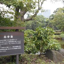 かつての濠の一部で、「心」の字をくずした形の池ですが、これは上から眺めないとはっきり認識できないかな。。