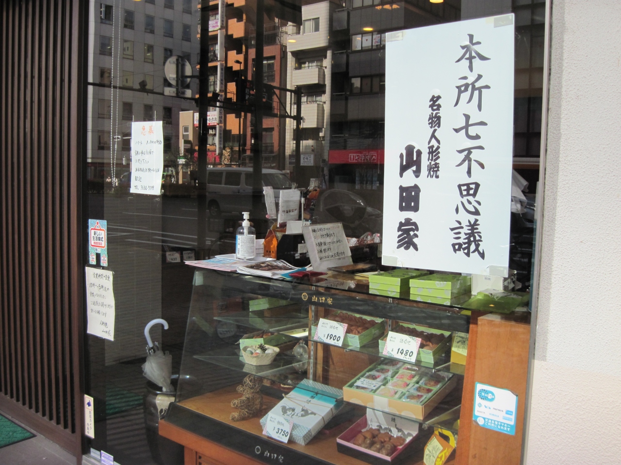本店は錦糸町南口から道路を渡って(横断歩道橋)すぐのところにありました。人形焼きのお店ですが、この周辺は本所の七不思議という、江戸時代の怪談、奇談が伝えられているエリアなので、それにちなんだタヌキの形のを人形焼きを買いました。とても愛嬌があるかわいい人形焼きでした。甘さ控えめのこし餡で美味しかったです。