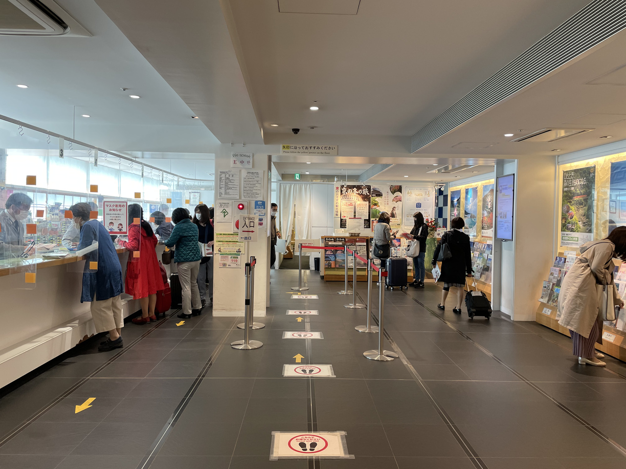 JR京都駅構内にある京都総合観光案内所です。カウンターがずらっと並び、たくさんのスタッフにより順番に案内していただけます。京都市内のみならずこれから行く舞鶴や丹後もいただきました。京都府内の資料が揃っています。