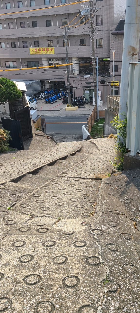 バス通りの左側にありますが、通り沿いには駐車場そのすぐわきに門があり、急坂になっています。
