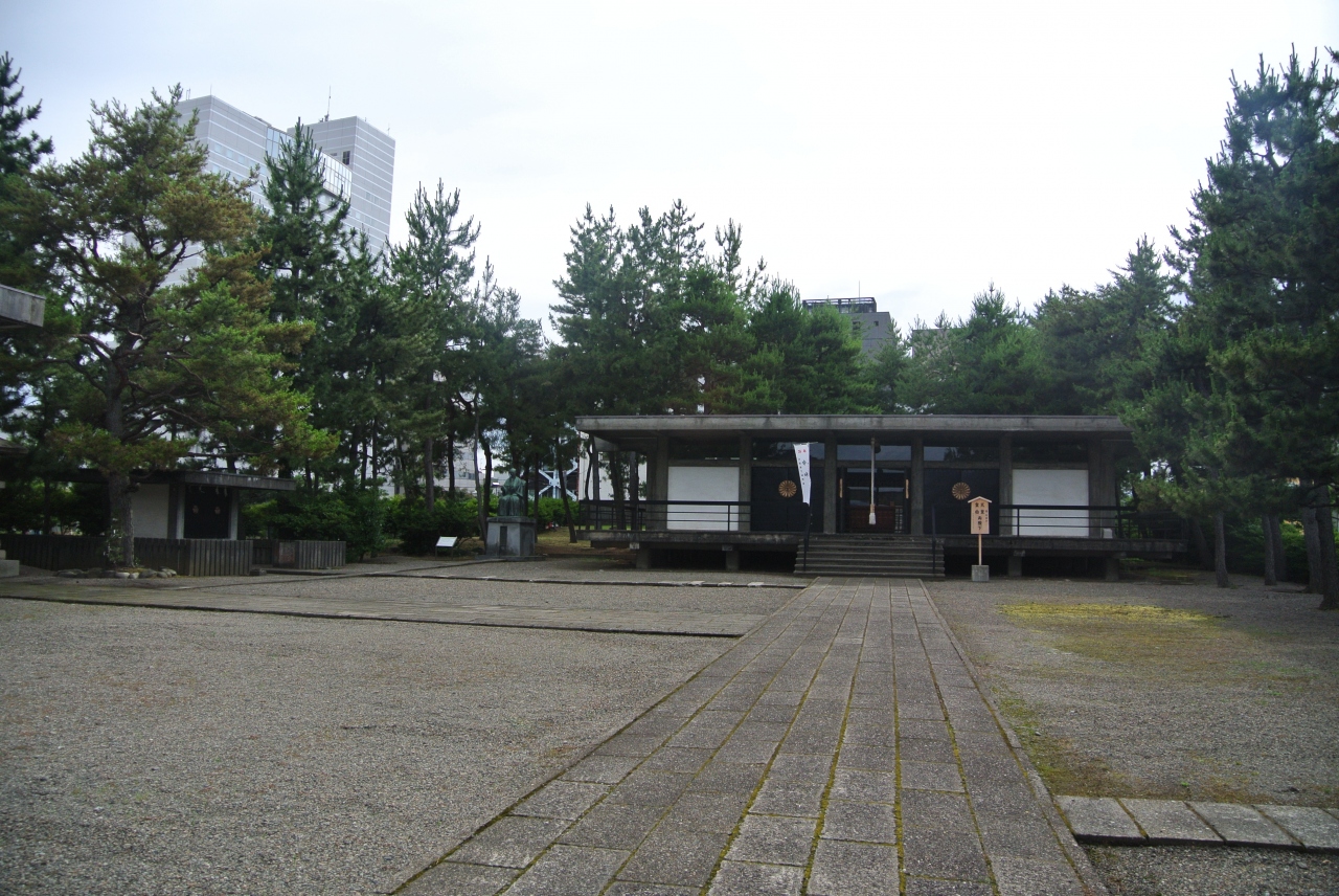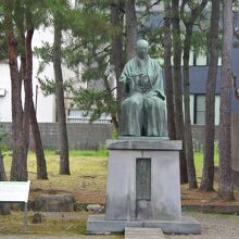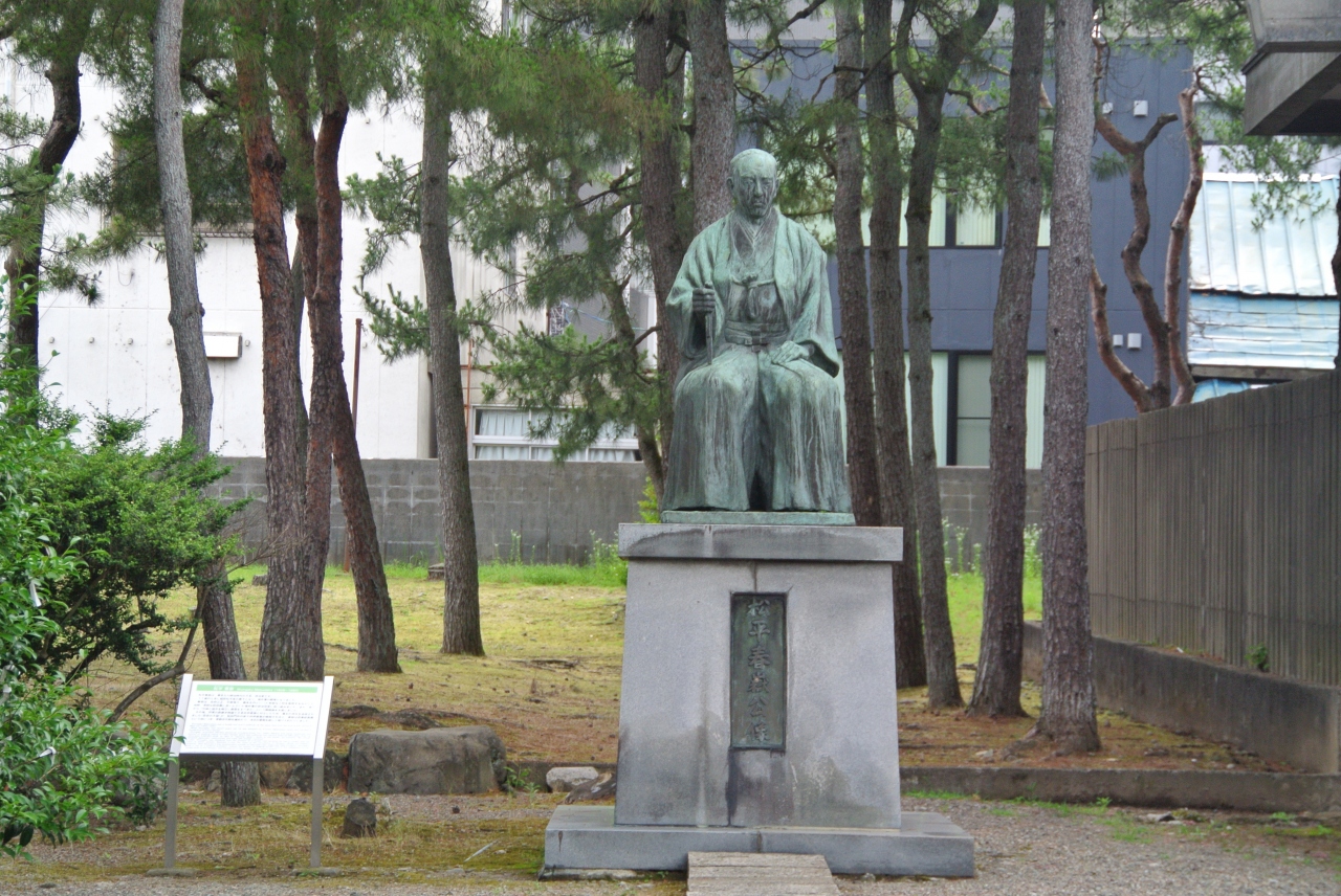 福井神社の境内、レトロモダンな社殿に向かって左側にある座像です。大河ドラマなどでも幕末の話になると必ず出てくる人物ですね。なお、この銅像は壮年時代の春嶽を写したもののようですが、福井市率郷土歴史博物館の前には若い時の春嶽像がありました。