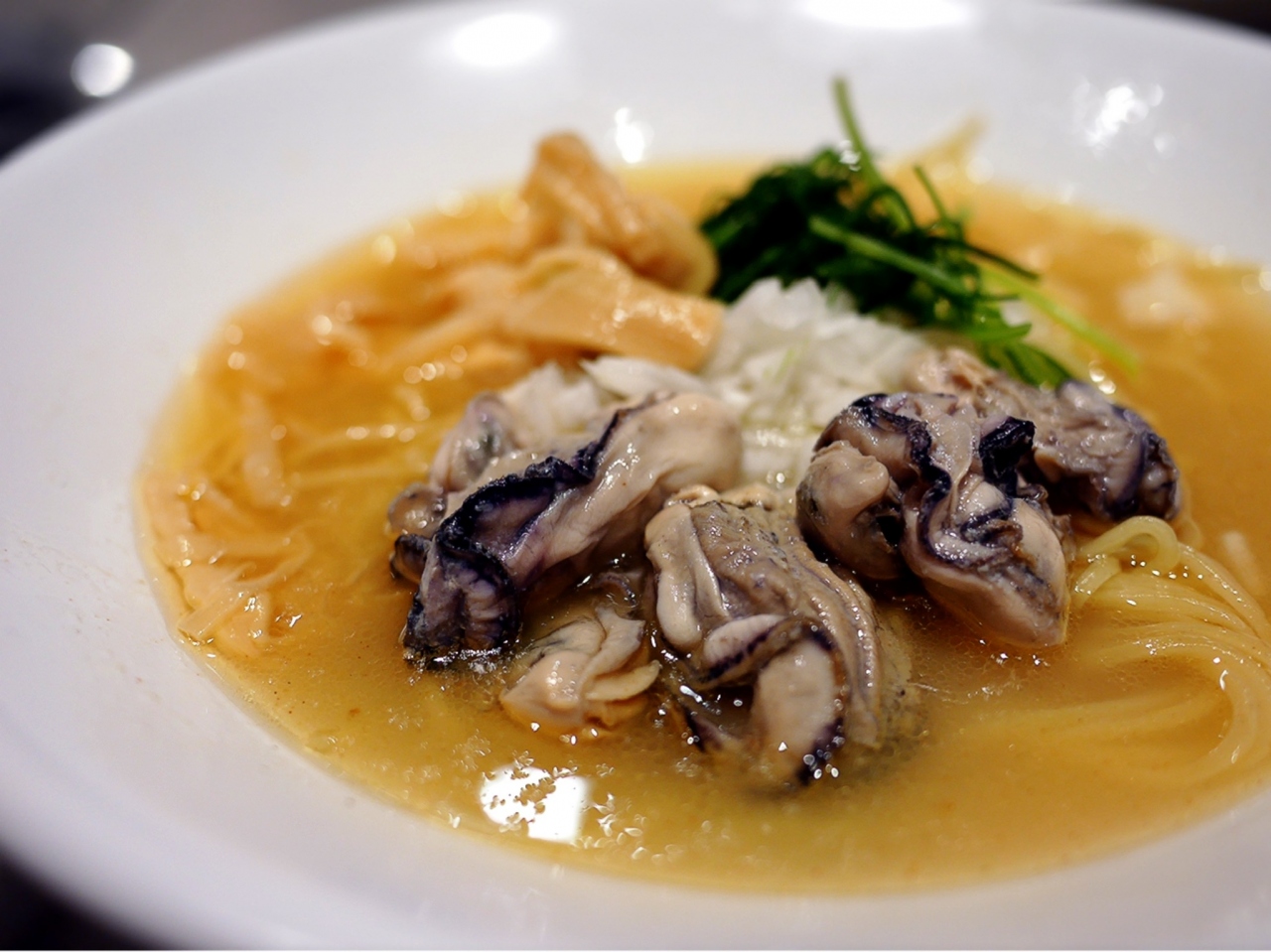 トッピングは、刻み玉ねぎ、メンマ、そしてもちろん牡蠣。プリンとした食感と旨味のある牡蠣がとても美味しかったですし、メンマも味が良く浸みていました。