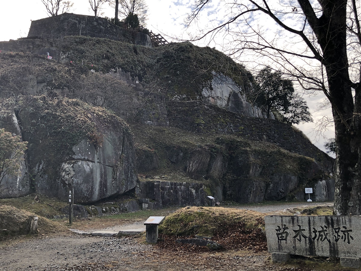 遠山氏の居城だったお城です。麓の苗木遠山史料館から一帯が観光地として整備されていて,スニーカーで十分散策できます。山頂の本丸に至るまで,屋敷跡,大矢倉跡,門跡などの遺稿が良く残っています。本丸からは麓を流れる木曽川始め,東濃の風景を楽しめます。オススメです。