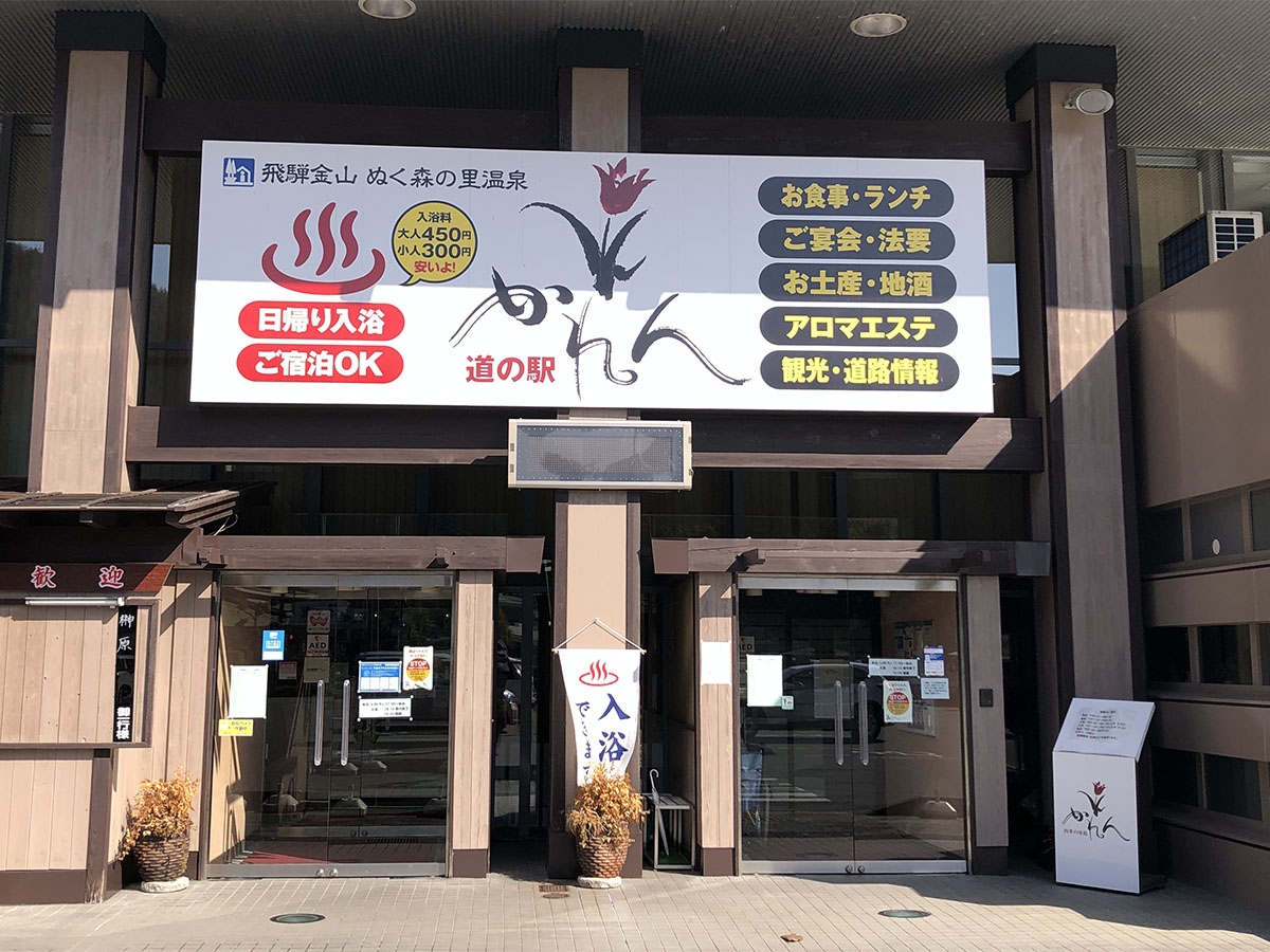 飛騨金山の幹線国道41号線から少し入ったところにあります。土産店,レストラン,日帰り温泉といった定番施設に加え,宿泊施設やアロマテラピーもあります。金山巨石群や横谷峡・白滝の散策のベースとして良さそうです。