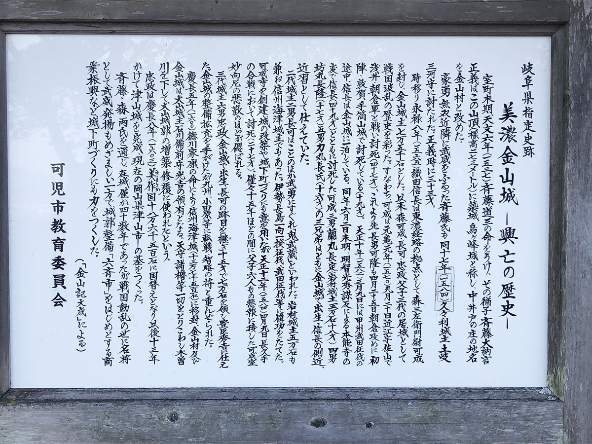 築城は斎藤正義で,本能寺で信長と最期をともにした森蘭丸(森家)ゆかりのお城もあります。出丸跡に駐車場やトイレがあり,城郭まで楽にアクセスできます。道も案内板もよく整備された城跡です。天守,本丸,二の丸,三の丸,曲輪,虎口などを見学することができます。山頂から木曽川も眺められ,気持ち良い展望でした。