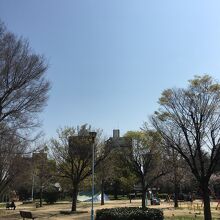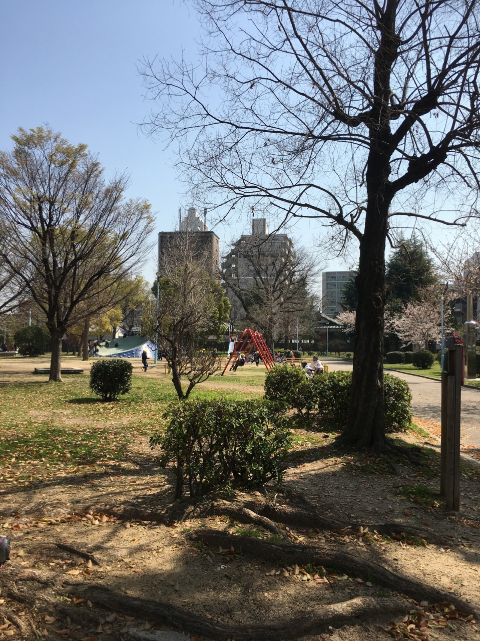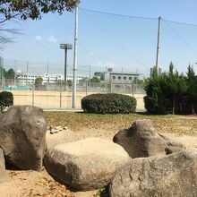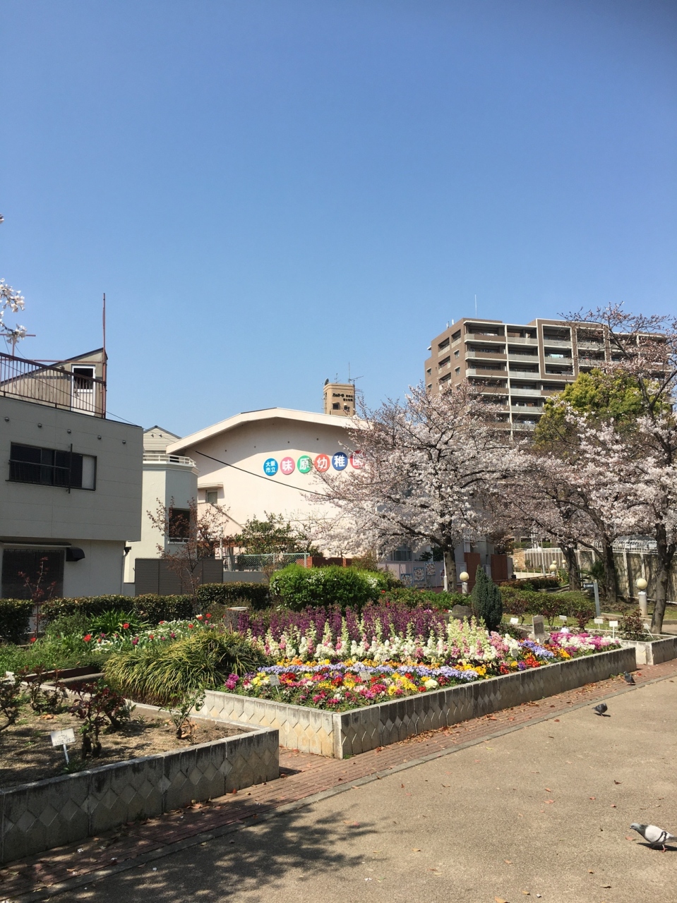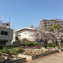 花壇があり、咲いていた花が綺麗でした。ベンチに座ると大きな石が展示してあるような感じでいくつかありました。子供の遊戯施設があり、園児が遊びに来ていました。木が植わり、桜が綺麗に咲いている住宅街にある公園です。