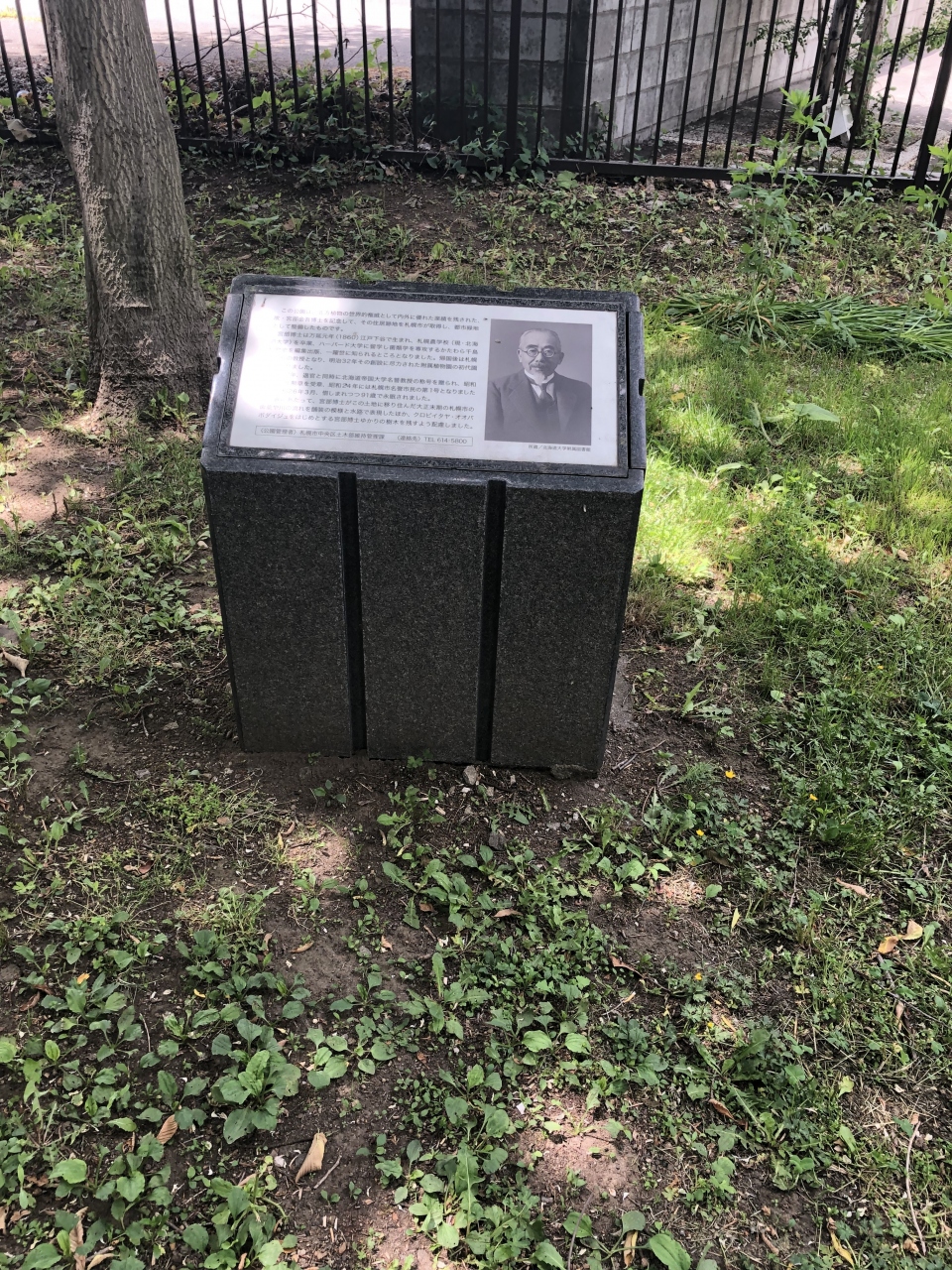 北海道大学植物園初代園長の宮部金吾博士の住宅跡に氏の業績を顕彰して造られた公園です。公園内に肖像写真入りに説明書きもありました。このエリアは北大からも近く、大学の教授などが居宅を構え、「桑園の大学村」と呼ばれた地域で、今も静かな住宅地です。