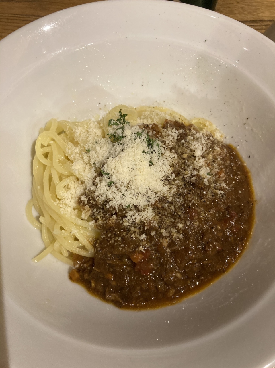 周りの雑多な雰囲気と違い、小さいながらも綺麗で清潔なお店であることにまず好感を持ちました。定番のミートソースは、野菜の甘さを感じて、丁寧に作られている味がします。パスタは3種類から選ぶことができ、生パスタはもちもちで美味しかったです。