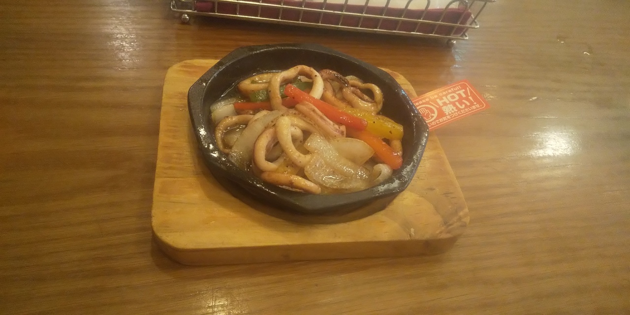 生ビールの中ジョッキと真イカの黒胡椒炒めを注文した。