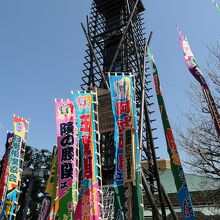 昔は文字通りよじ登っていたそうですが、現在の櫓にはなんとエレベーターが付いています。ただ、櫓のてっぺんは2m四方程度とのことで、ここに大人が2人入るのはかなり狭いでしょう。