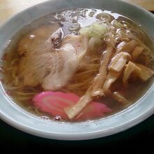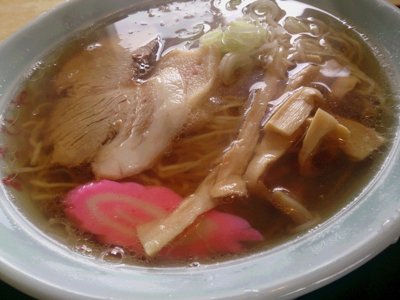 標茶町の繁華街のはずれにある食堂です。標茶町は、あまりご飯をいただけるところがないので、昼時には、けっこう込み合います。ここで、醤油ラーメンを注文しました。澄んだスープですが、味は濃いめです。麺は、少し細めで具は、チャーシューにメンマ、大きく切ったナルトです。シンプルですが昔ながらの味で懐かしくいただきました。