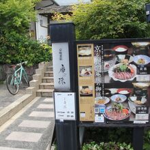 萩膳を頂きました。湯豆腐と和牛のステーキが付き、湯葉や生麩などの御膳となっています。豆腐は、甘みがあって口の中で溶けるように柔らかです。丹波産の和牛もも肉のステーキは、とてもジューシーな肉で、少し赤みが残ったくらいの焼き加減がとても良かったです。