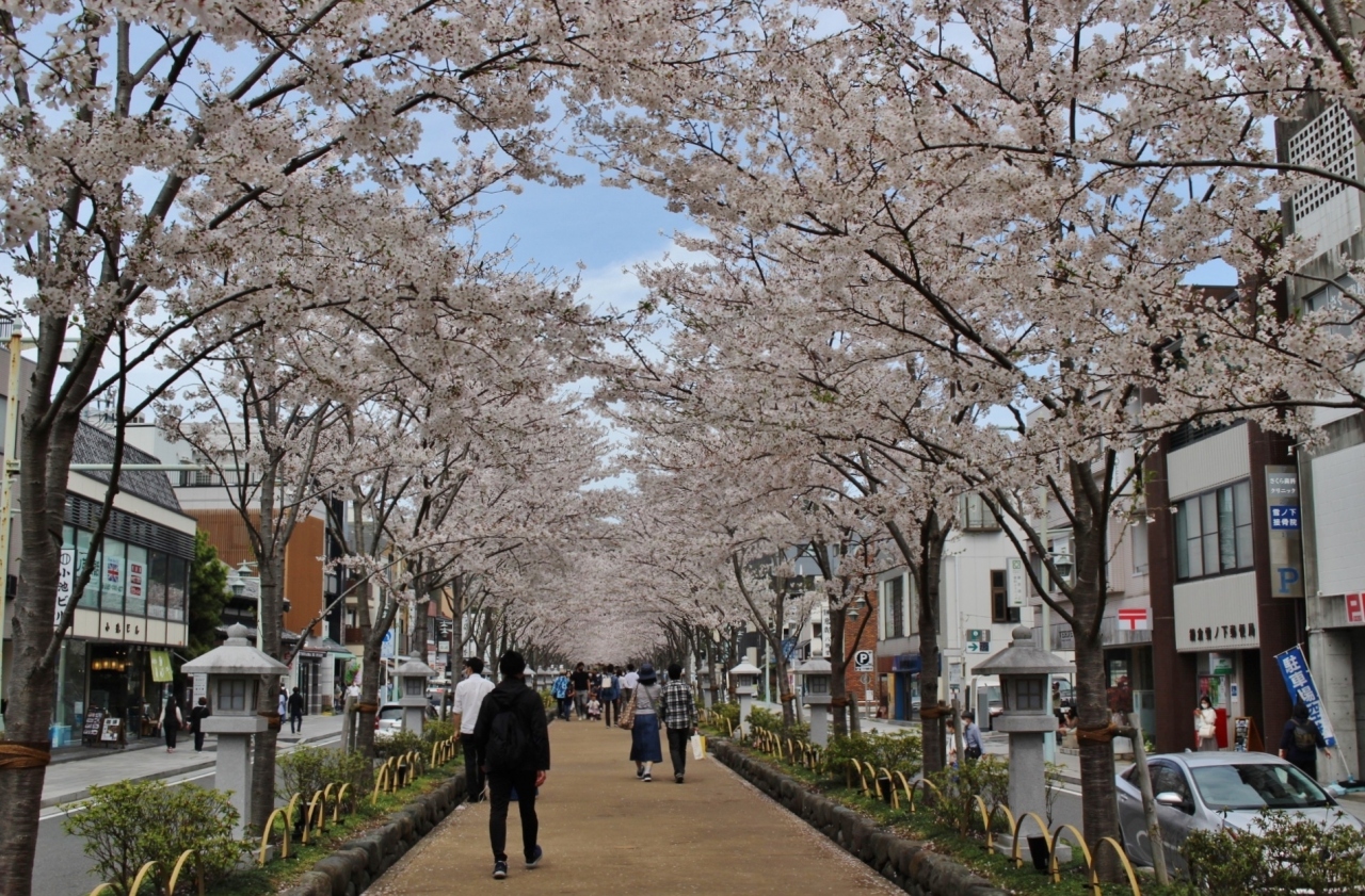 5年ほど前にこの桜が植えらえられたため、暫くの間は並木が貧弱であったが、その後桜が成長してきて、特に八幡宮寄りの箇所は並木らしくなってきた。