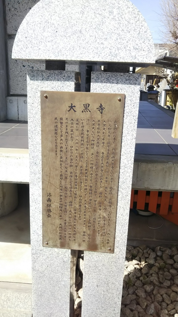 ここって中に幼稚園あるんだね。境内入ると大黒天さんがいた。それがここのご本尊で寺の名前の由来にもなってる。金運の水が流れてた。その流れてるところにお釈迦様のような小さな銅像が立ってた。ずっと前からあるんかなと思ったら2001年にほられたそう