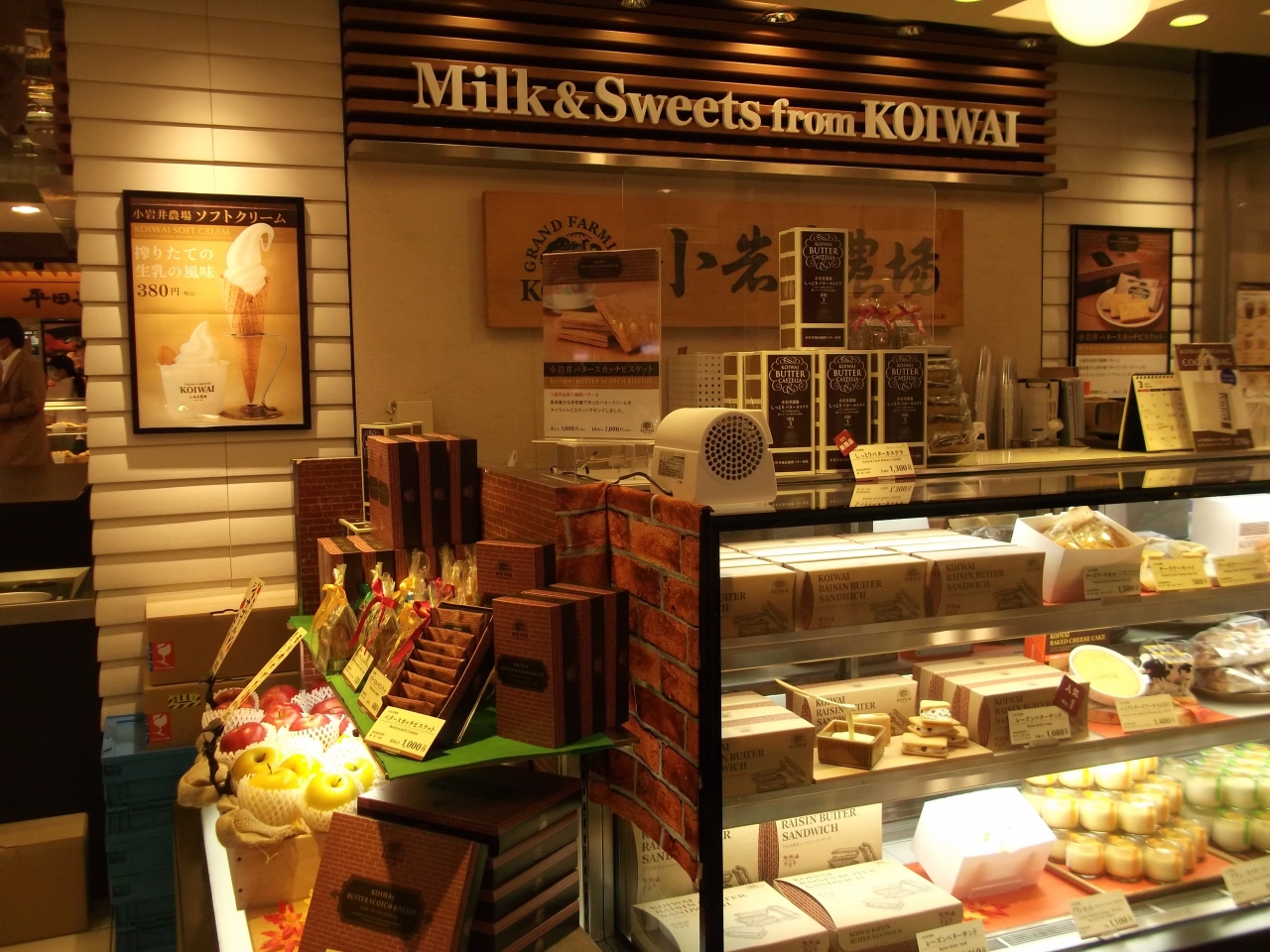 東京駅改札内のエキュートにある、小岩井農場のショップです。一番人気というレーズンバターサンドを購入しました。小岩井のミルクの素材を生かしたバターにレーズンの味がしみこんでいて、お気に入りの一品です。イートインコーナーもあり、ミルク味が濃厚なソフトクリームも味わえます。