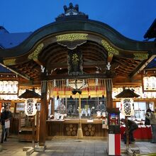 商店街の中で極狭なので、鳥居があるもののビルの壁にめり込んでいます。
