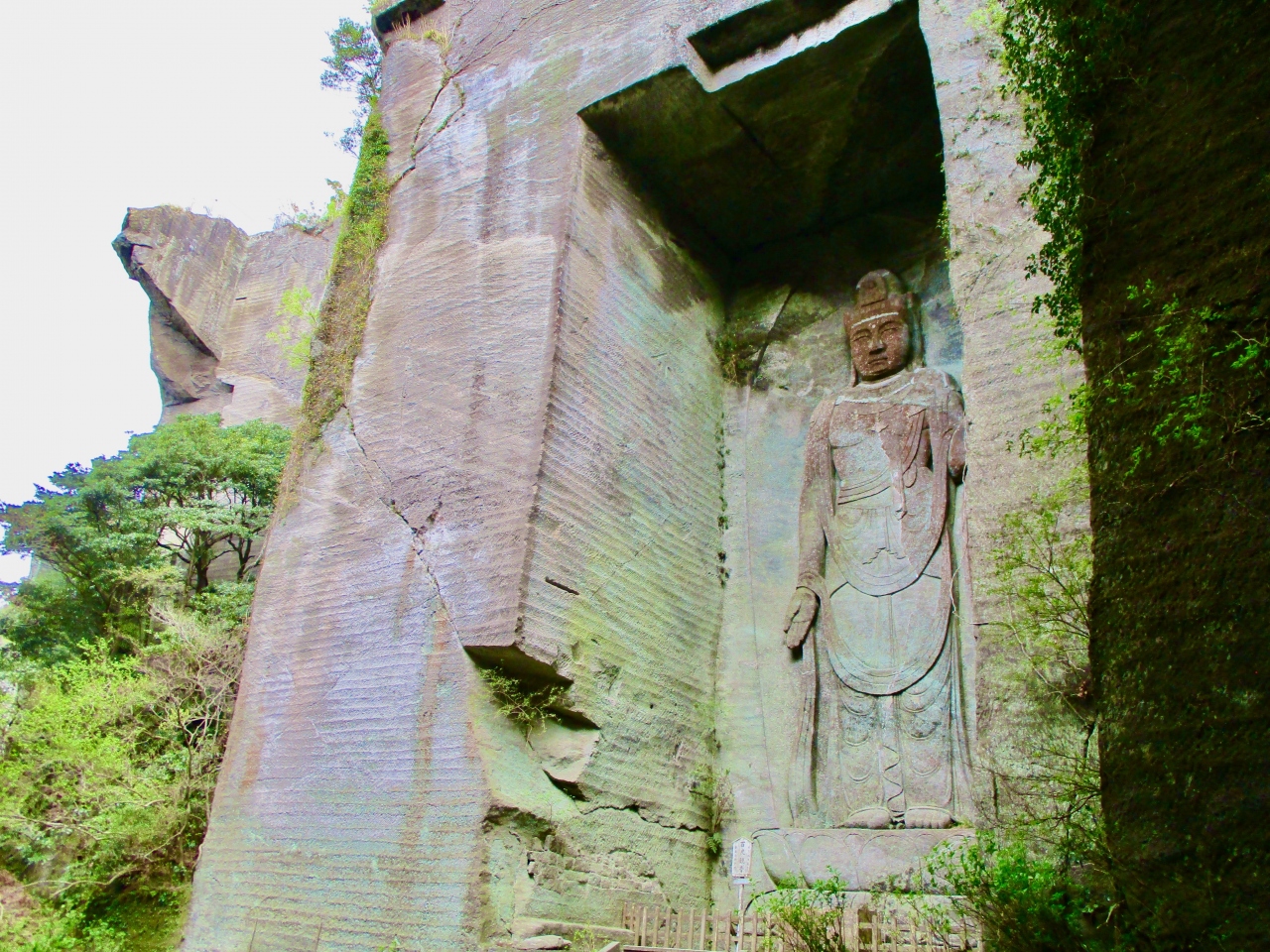 地獄のぞきの真下のあたりに位置するので、ロープウェイの山頂駅から地獄のぞきに行く途中に立ち寄りました。この辺りは山全体が石でできていて、それを削って造ったようです。昭和41年に6ヶ月かけて完成したそうです。