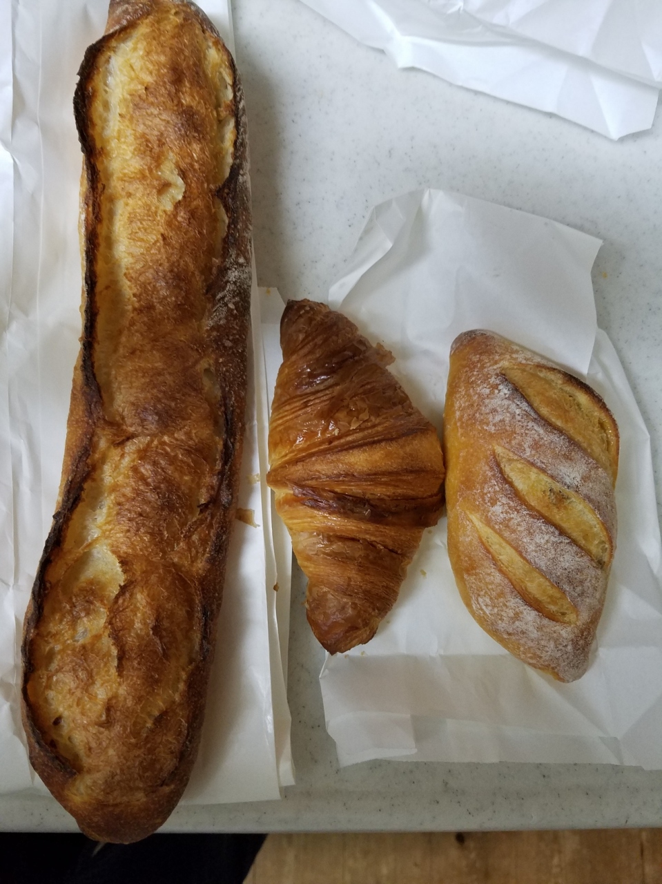 人気のパン屋さんです。行って見てびっくり長蛇の列です。お店は小さく、1組ずつしか入れません。人気パンはバケットなのでバケットとクロワッサンを買って帰りました。バケットはそんなに固くなく、もちもちしてとてもおいしかった。パンドミーも欲しかったのですが、すでに午前中で売り切れ。残念だった。