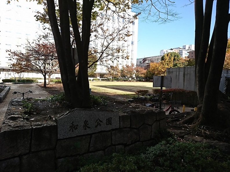 秋葉原駅昭和通り口から徒歩5分程度、千代田区神田和泉町にある公園です。公園入口に防火守護地の碑という碑が立っていて、他には多目的広場や子供向けの遊具がありました。関東大震災の時、この辺りに住んでいた町民が協力し合って防火に努め、甚大な被害を受けた神田の中で、この地区だけ奇跡的に焼失を免れた歴史があるそうです。何かを持っている公園なのかもしれません。